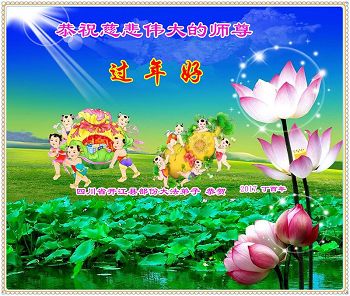 四川省資陽市安岳縣一大法弟子代表全家和所有明白相的親朋好友恭祝慈悲偉大師尊新年快樂!