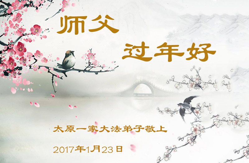 山西太原一家大法弟子恭祝師尊新年快樂!