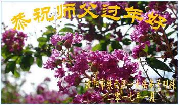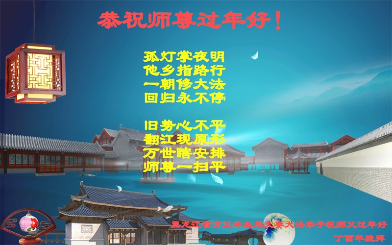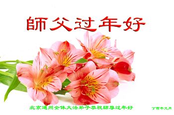 慈悲偉大的師父您好!中國的傳統新年即將到來,我們三位大法弟子向師父問好!給師父拜年!祝師父新年快樂!一年復一年,您為弟子眾生操碎了心,弟子無以回報,只有精進、精進、再精進,以報師恩。謝謝師父!叩拜師父!