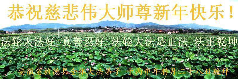 值此新年來臨之際,安徽爐橋全體大法弟子叩謝師恩!祝師尊新年快樂!師父您辛苦了!在新的一年裏弟子一定更加精進,去掉怕心,救度眾生!
