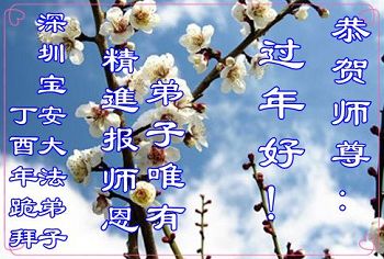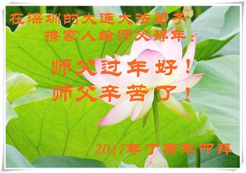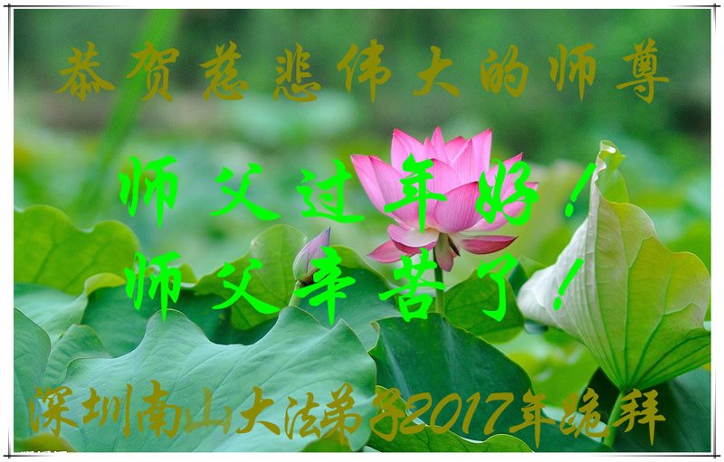 年復一年,在中國傳統佳節----雞年即將到來之際,我們廣東省深圳市龍華區全體大法弟子懷著無比思念的心情給慈悲偉大的師尊拜年!恭祝師尊過年好!祝師尊新年快樂!