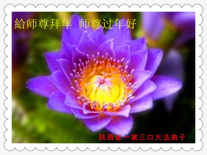 陝西省寶雞市岐山縣蔡家坡一青年大法弟子給慈悲偉大的師尊拜年:恭祝師尊新年好!弟子合十!叩謝恩師!
