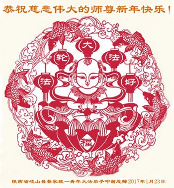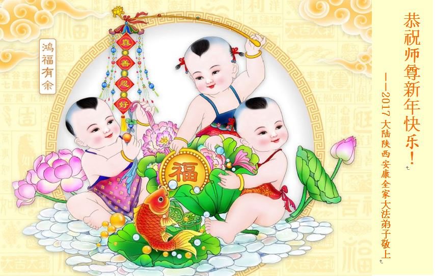 在此2017新年到來之際,謹代表全家三位大法弟子及所有親人,向師尊拜年!恭祝師尊新年吉祥!幸福安康!