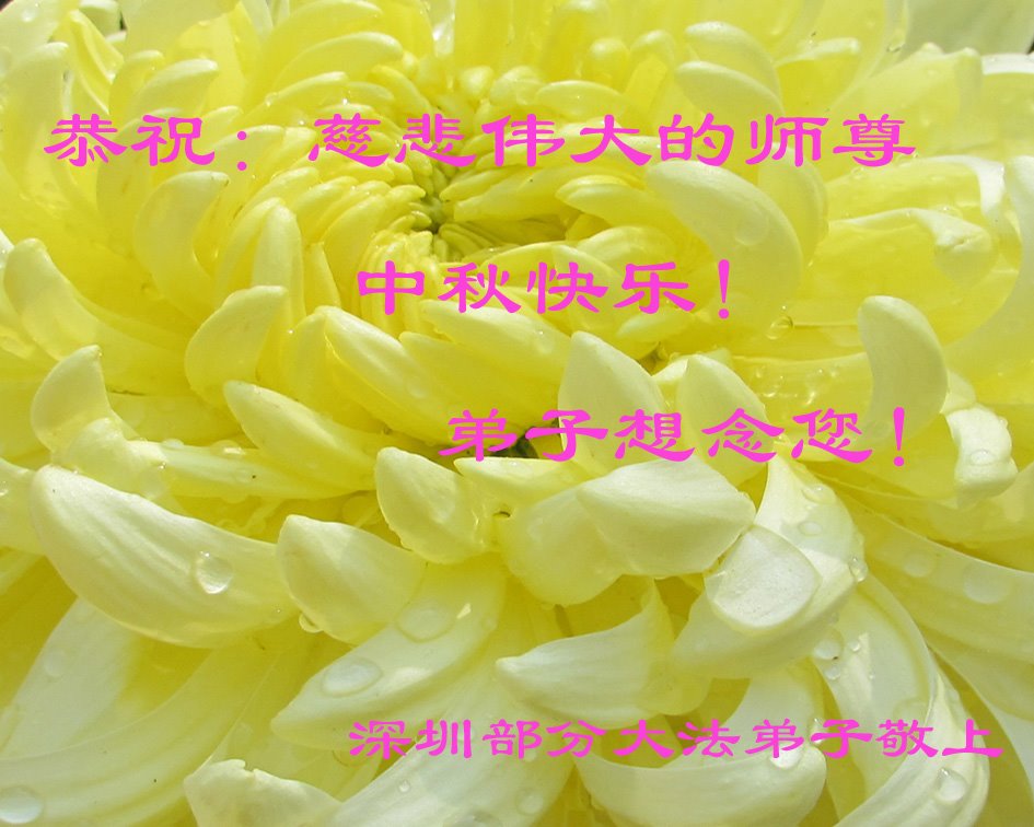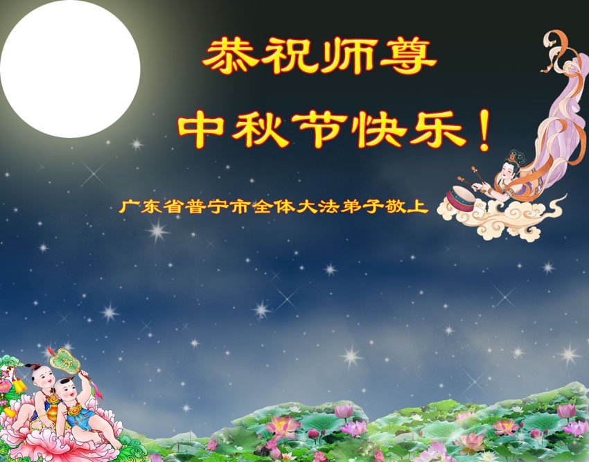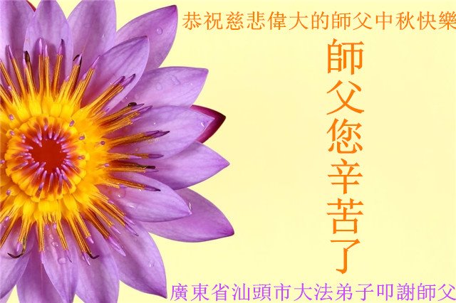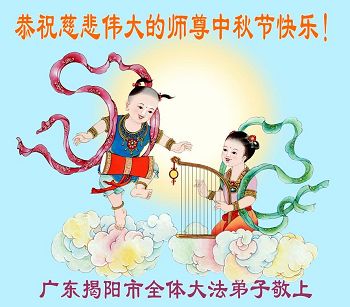 師父您好!師父您辛苦了!師父謝謝您!在中秋節來臨之際,惠東縣全體大法弟子恭祝師尊中秋節快樂!在這有限的寶貴的時間裏,弟子只有聽師父的話,精進實修,做好三件事,才能不辜負師父的慈悲苦度。