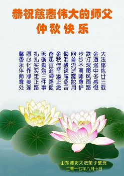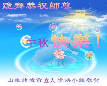 山東濰坊諸城市大法弟子在中秋佳節來臨之際,向慈悲偉大的師父問好!師父您好!