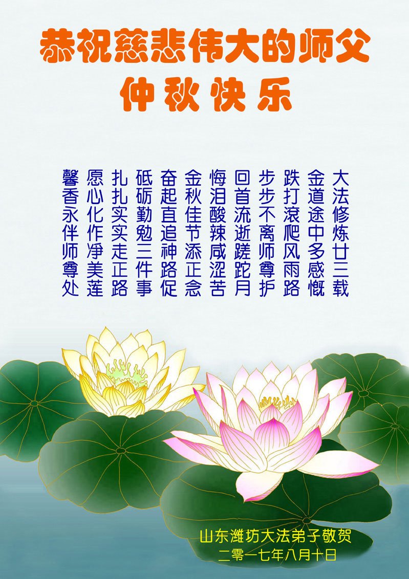山東濰坊諸城市大法弟子在中秋佳節來臨之際,向慈悲偉大的師父問好師父您好!師父辛苦了!