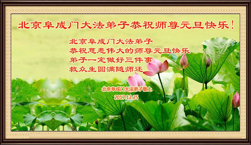 北京阜成門大法弟子恭祝慈悲偉大的師尊元旦快樂!