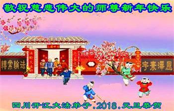 二零一七年就要進入史冊,新的一年即將到來。在這辭舊迎新的日子裏,我們滿懷對偉大慈悲的師尊無限敬仰的心情合十恭祝師尊新年快樂!過去的一年,在師尊的指引與呵護下我們做好「三件事」,在通向神的路上,磕磕絆絆闖個一關又一關,新的一年裏我們會更加努力精進,學好法,運用好師尊賜予我們的法寶「向內找」,踏踏實實的修好自己,做師尊合格的大法弟子。讓我們再次虔誠敬祝師尊新年快樂!