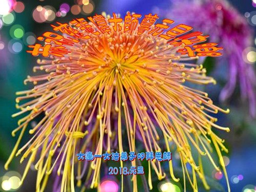 二零一八年正向我們走來,在這新年將至之際,弟子及家人衷心恭祝師尊新年快樂!感恩師尊慈悲救度眾生,師父辛苦了!弟子一定走好師父安排的路,全盤否定舊勢力的一切安排,不被觀念、執著、假相帶動,純純淨淨的做好三件事,請師父放心!