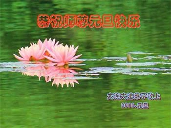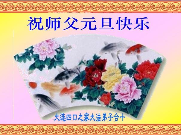 大連市泡崖大法弟子及家屬五人恭祝師父新年快樂!