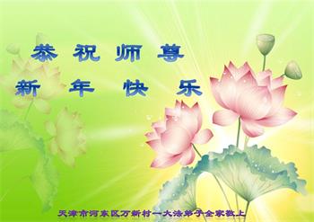 天津市河東區萬新村一大法弟子全家恭祝師父新年快樂!
