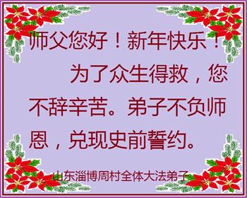 山東省淄博市張店區全體大法弟子恭祝慈悲偉大的師尊新年快樂!