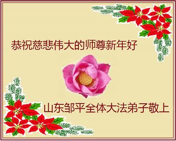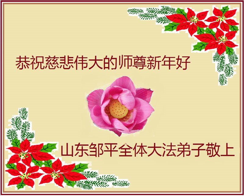 山東鄒平大法弟子恭祝慈悲偉大的師尊新年好!