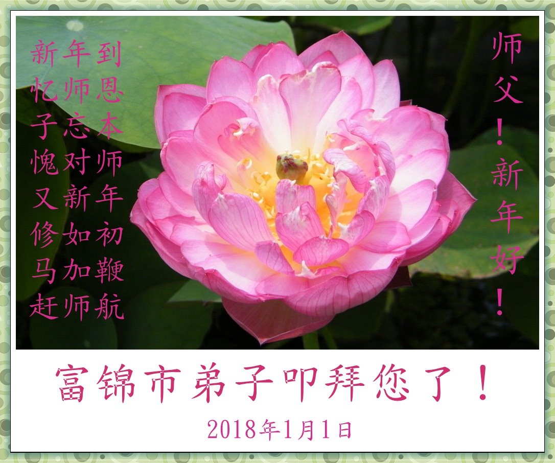 在正法的最後時刻,在眾生面臨危險的時刻,珍惜師父用巨大的付出延續來的寶貴救人時間。弟子一定兌現史前和師父簽下的約定,學好法、修好自己,完成好師父交給我們的三件事,盡自己的最大努力用心多救人,圓滿隨師還,返回到我們那無比美好聖潔的家園。弟子再一次感謝師父!用盡千言萬語也無法表達對師父的感恩!感謝恩師的慈悲苦度!恭祝慈悲偉大的師父新年快樂!