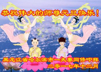 黑龍江省哈爾濱市香坊區一夫妻大法弟子恭祝慈悲偉大的師尊元旦快樂!
