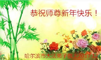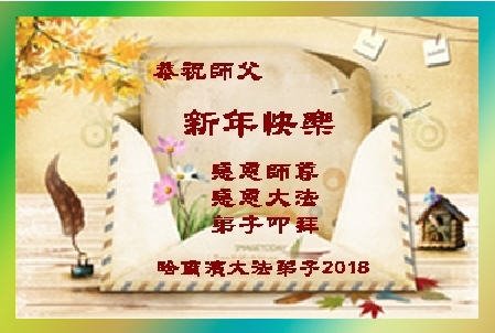 黑龍江省哈爾濱市香坊區一夫妻大法弟子恭祝慈悲偉大的師尊二零一八年元旦快樂!