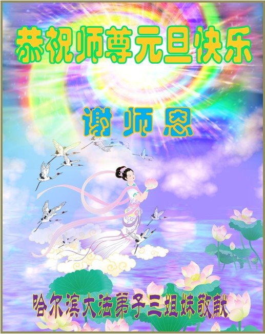 黑龍江省哈爾濱大法弟子三姐妹恭祝師尊元旦快樂!