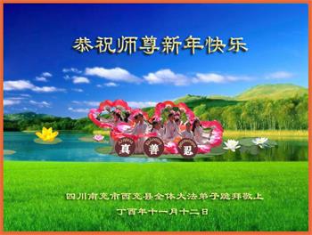 四川省遂寧市南蓮學法小組全體大法弟子恭祝師尊元旦快樂!