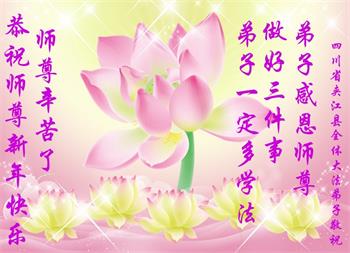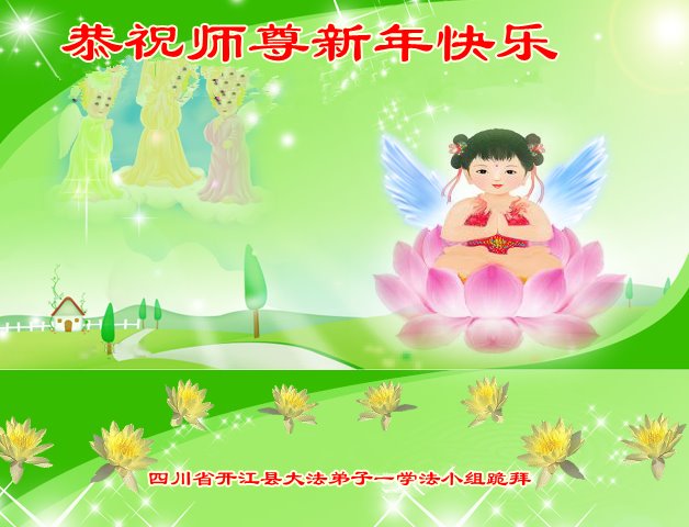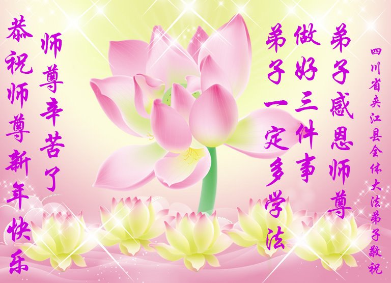 新年來臨時,全體渠縣大法弟子恭祝師父新年好!在過去一年裏整體配合,個人修煉,講真相,都有很多不足和遺憾。其實就是學法不足和不向內修造成的,感謝師父給予弟子時間和機會,從新做好,做好三件事,紮實實修,給更多世人和眾生帶去真相和福音。謝謝師父!渠縣全體大法弟子敬上!