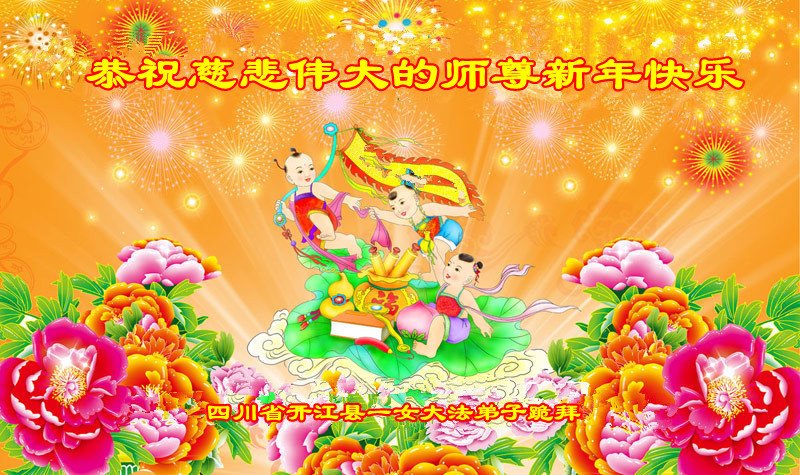 達州市通川區一大法弟子向慈悲偉大師父新年問候:祝師父新年快樂!