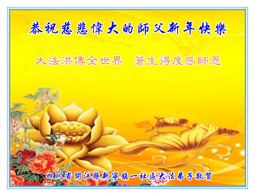 四川省達州市開江縣新寧鎮一社區大法弟子恭祝慈悲偉大的師父新年快樂!