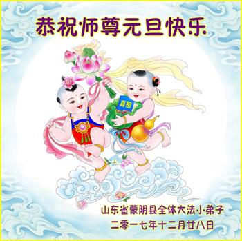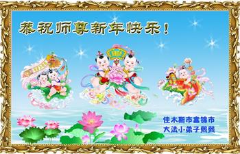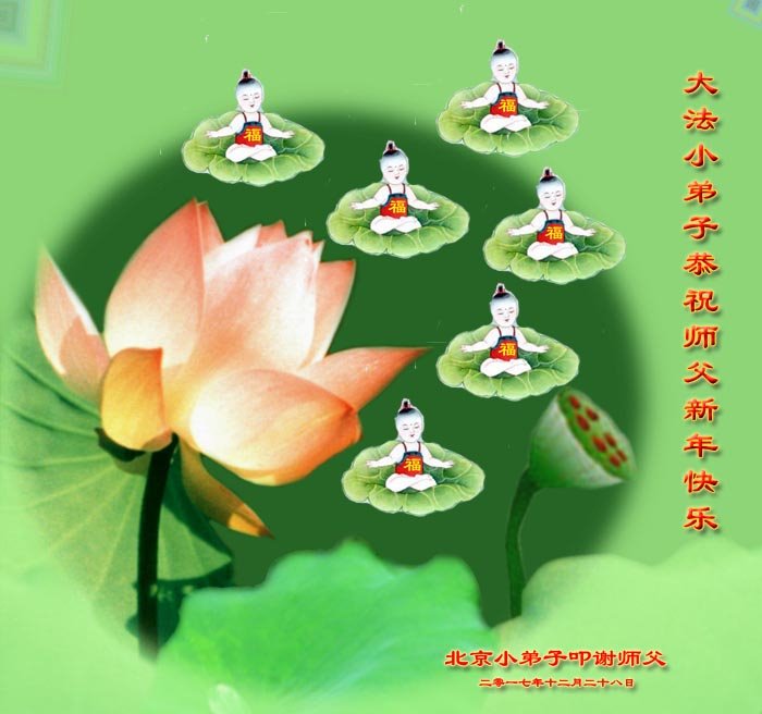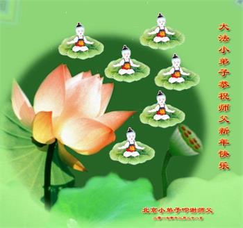 北京四人學法小組攜大法小弟子恭祝師尊新年快樂!我們的學法小組從兩個人到三個人,再到現在的四個人,還有兩個大法小弟子,雖然人少,卻一直在師父的慈悲看護下走到今天。我們非常珍惜這難得的一起修煉提高的環境,新的一年一定更加精進,做好三件事,以報師恩!