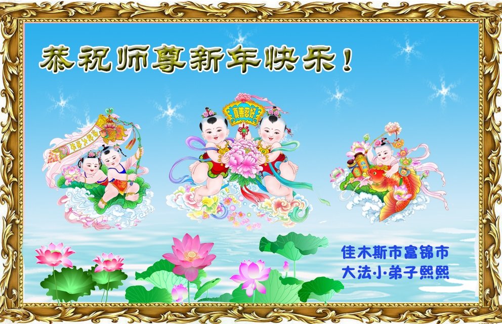 值此新年之際,遼寧省葫蘆島市連山區一家大法弟子及大法小弟子,恭祝最偉大的師尊新年好!