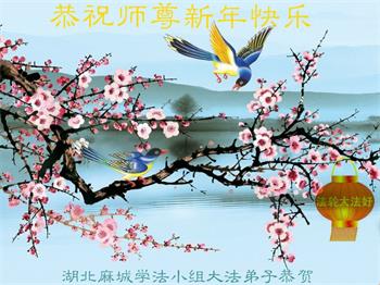 湖北省黃岡市麻城市學法小組大法弟子恭祝師尊新年快樂!