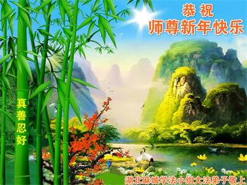 湖北省天門市岳口鎮全體大法弟子恭祝師父新年好!
