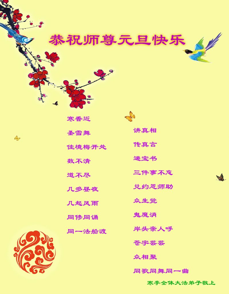 在這新年來臨之際,我們小組全體大法弟子,叩拜師尊新年快樂!