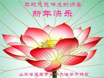 山東省昌邑市全體大法弟子恭祝慈悲偉大的師尊新年快樂!感謝師父為的無比承受與慈悲呵護,弟子們想念師父,盼師父早日回國!