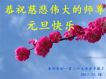 山東省煙台市萊州市農村一家三口大法弟子恭祝慈悲偉大的師尊元旦快樂!
