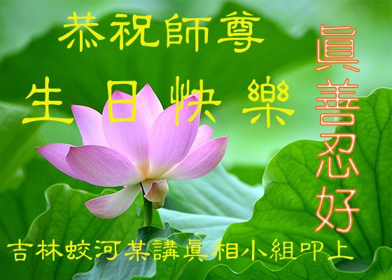 吉林市技術同修大法弟子恭祝師父生日快樂!普天同慶法輪大法日!