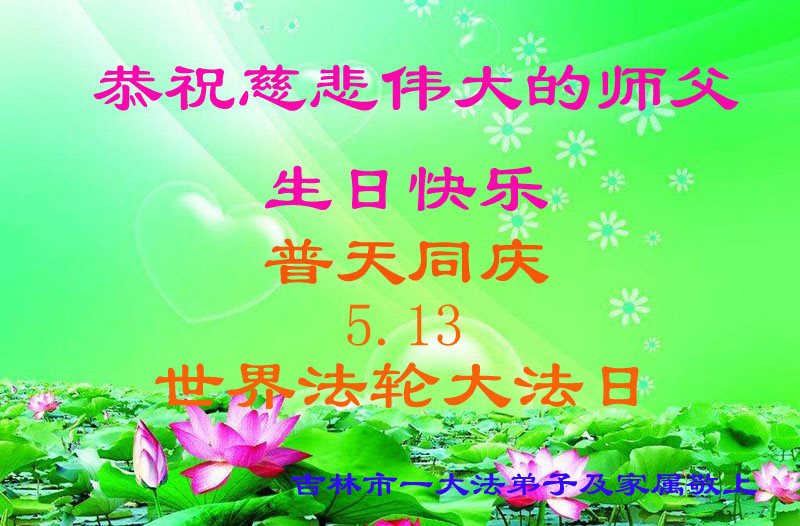 吉林市一大法弟子及家屬恭祝師父生日快樂!普天同慶法輪大法日!