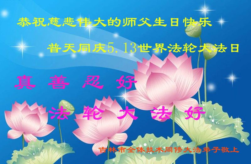 吉林市大法弟子恭賀世界法輪大法日暨師尊華誕(20條)