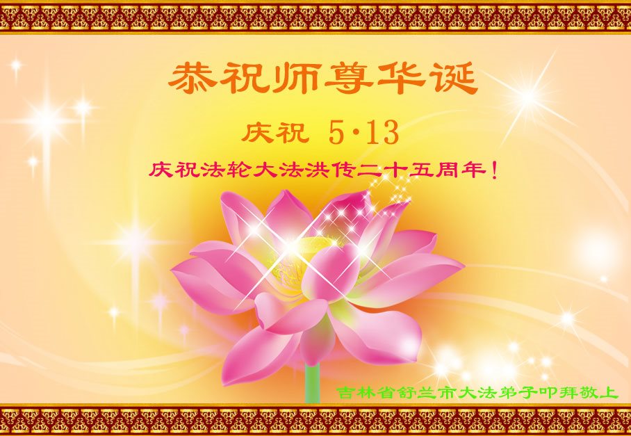 吉林省吉林市舒蘭市大法弟子恭祝師尊華誕!慶祝5.13世界法輪大法日!慶祝法輪大法洪傳二十五週年!