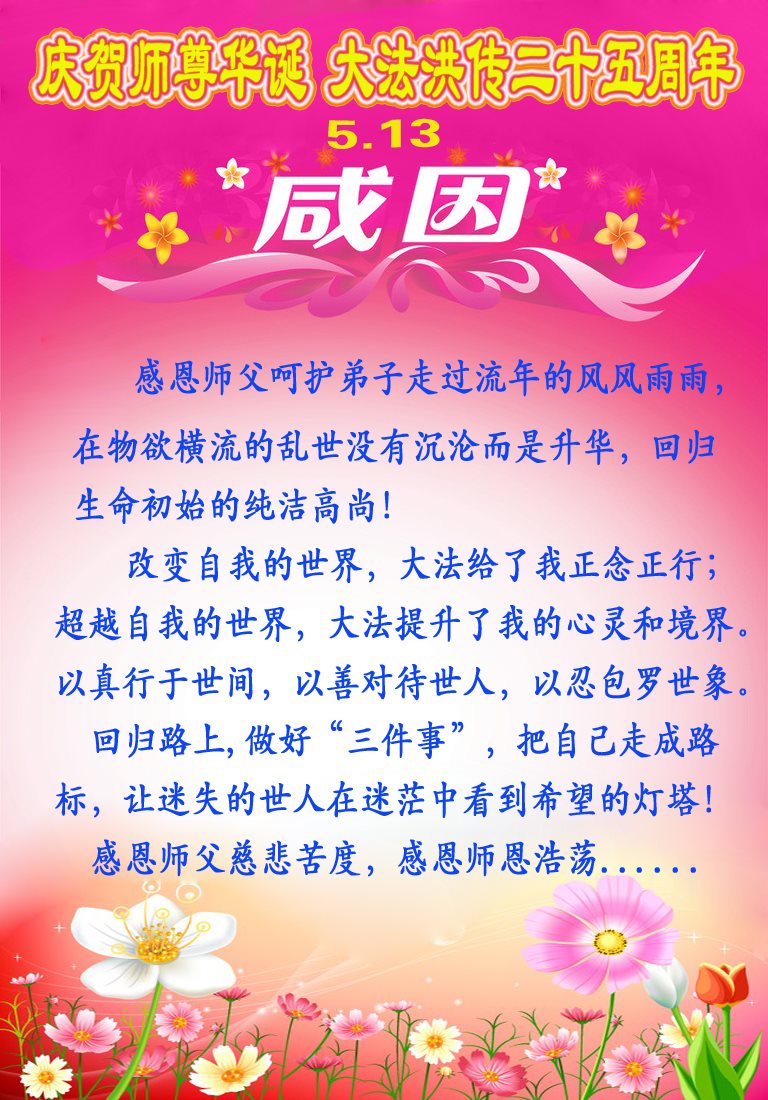 慶賀師尊華誕!慶賀世界法輪大法日!慶賀大法洪傳二十五週年!