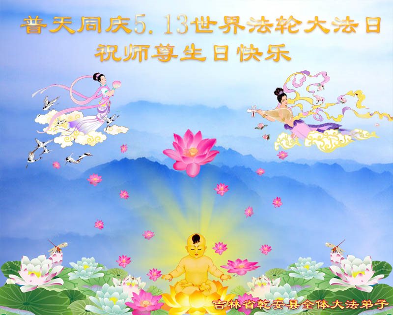 吉林省乾安縣全體大法弟子恭祝師尊生日快樂!熱烈祝賀世界法輪大法日!