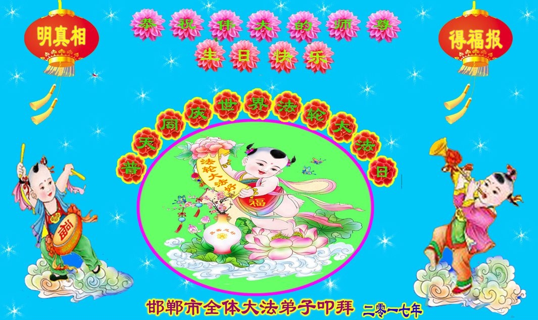 在這普天同慶的美好日子裏,眾弟子熱烈祝賀師尊生日快樂!師尊您好!熱烈祝賀世界法輪大法日!