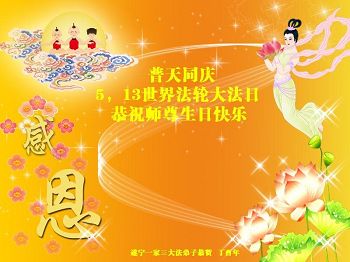 在二零一七年法輪大法日到來之際,我們懷著無比崇敬的心情恭祝偉大的師尊生日快樂!感謝師尊在修煉中無微不至的看護,弟子們無以言表,謝謝您!