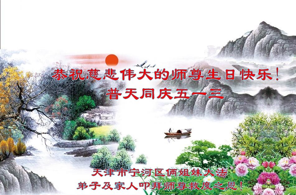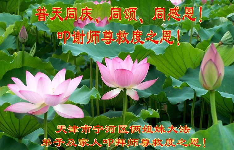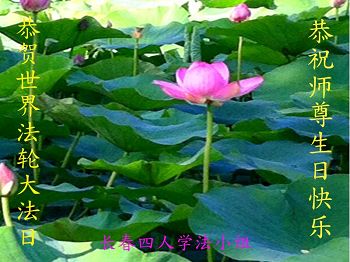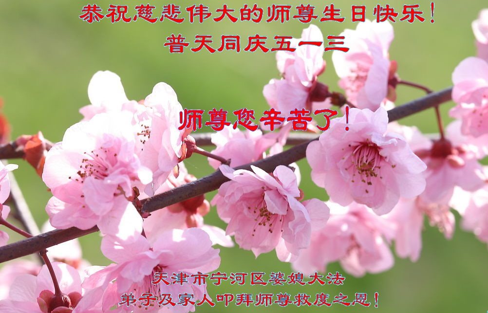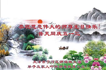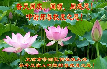 走入大法修煉已近二十年,修煉中我們無不感受到師尊為我們開啟智慧。師尊的時時保護,每一位大法弟子、及家庭都深有感觸。是師父的無量慈悲,才使我們大法弟子、及世人能走到今天。藉此,我們大法弟子與家人深深的問候一聲:師父您辛苦了!