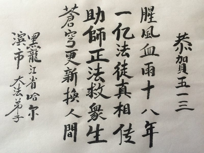 大陸大法弟子恭賀師尊生日快樂!及恭賀世界法輪大法日!
