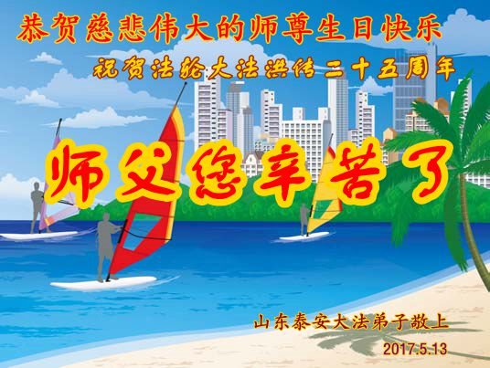 山東泰安大法小弟子恭賀慈悲偉大的師尊生日快樂!