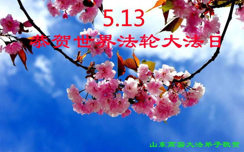 山東省濰坊市高密市一大法弟子恭賀世界法輪大法日!恭祝師父生日快樂!恭賀法輪大法傳世25週年!