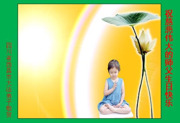 師父,您辛苦了!謝謝師父的慈悲救度!我們全家大法弟子恭祝師尊生日快樂!