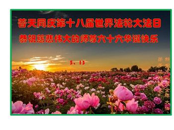 在有限的時間裏,多救人,兌現自己的史前誓約,走好走正最後的路,修好自己和帶著支持法輪大法的所有家人和得救的眾生共祝師父快樂!同慶祝五一三世界法輪大法日!