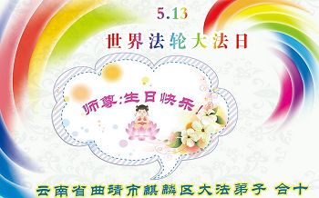 雲南省曲靖市麒麟區大法弟子恭祝師尊生日快樂!普天同慶世界法輪大法日!