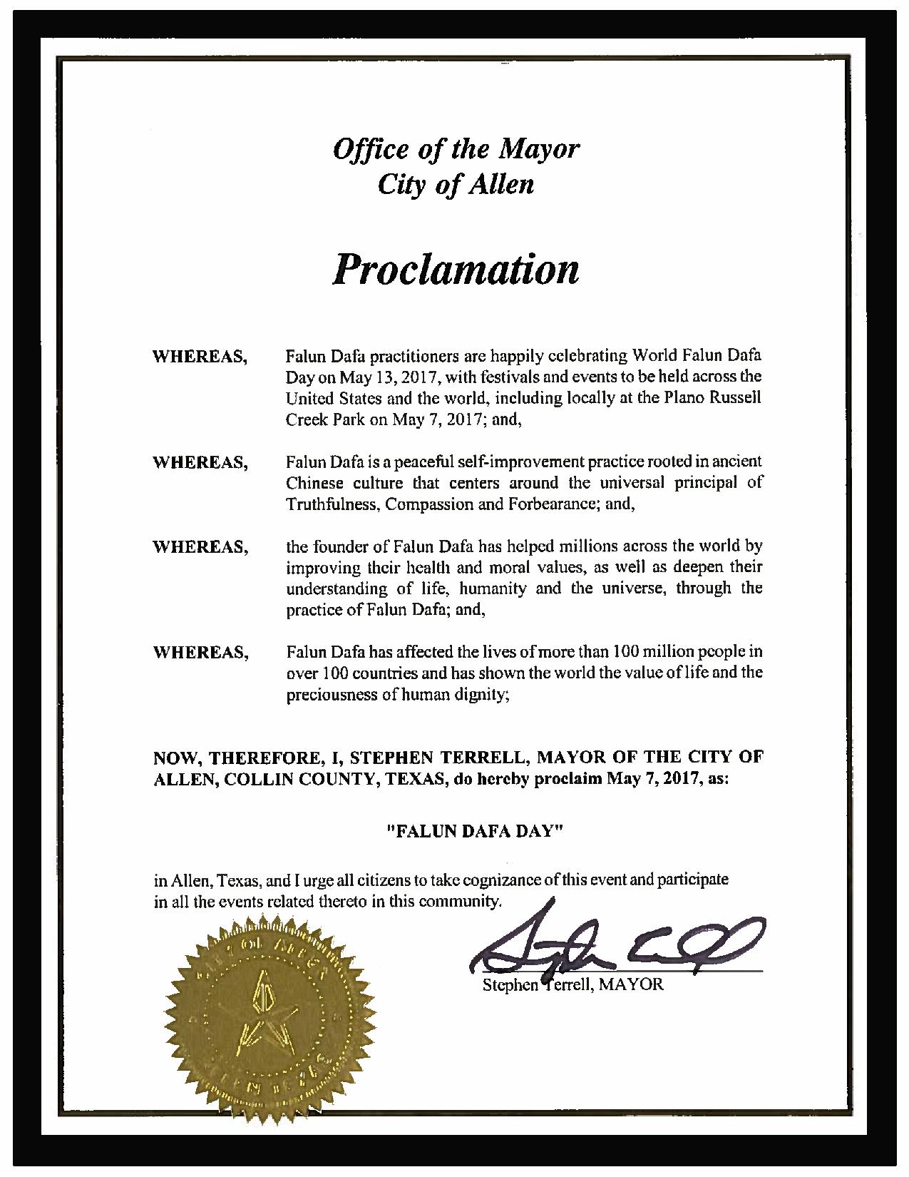 圖3:美國德州艾倫市宣布「法輪大法日」 |