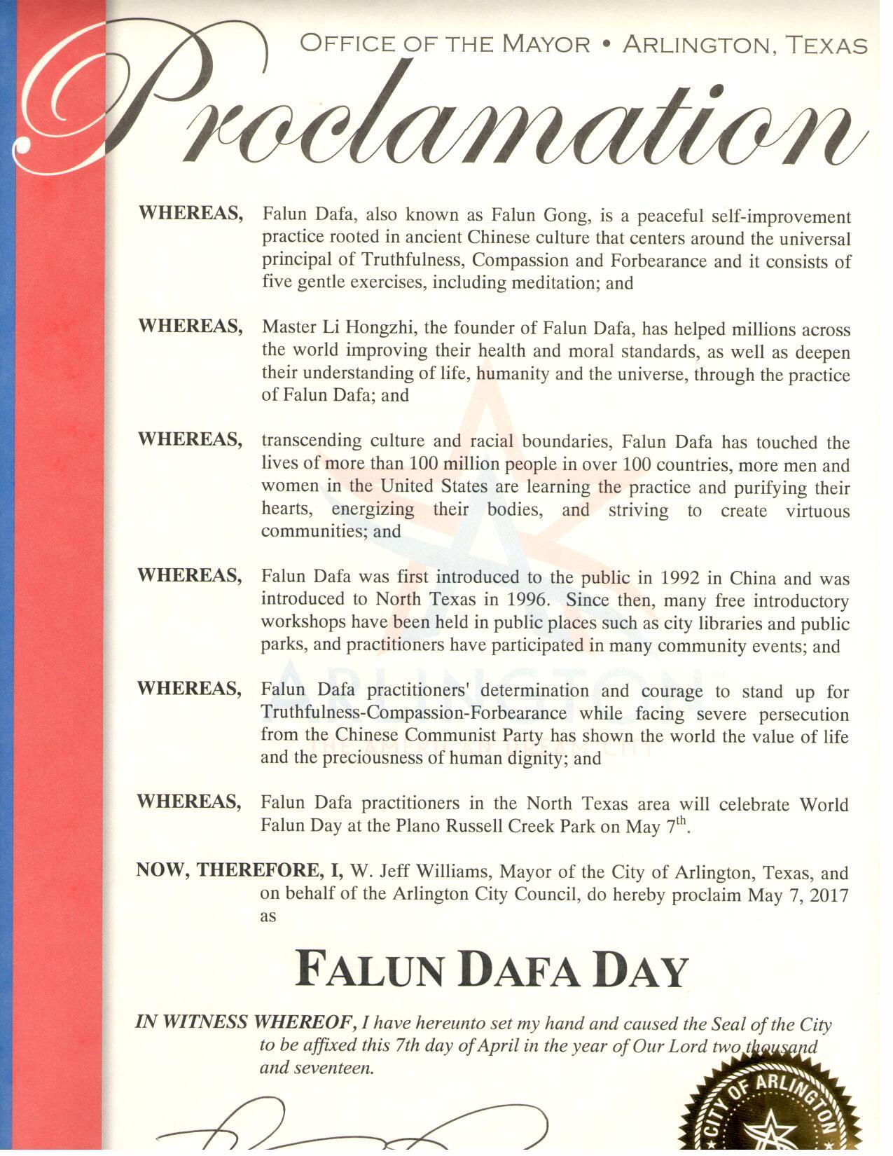 圖4:美國德州阿靈頓市宣布「法輪大法日」 |
