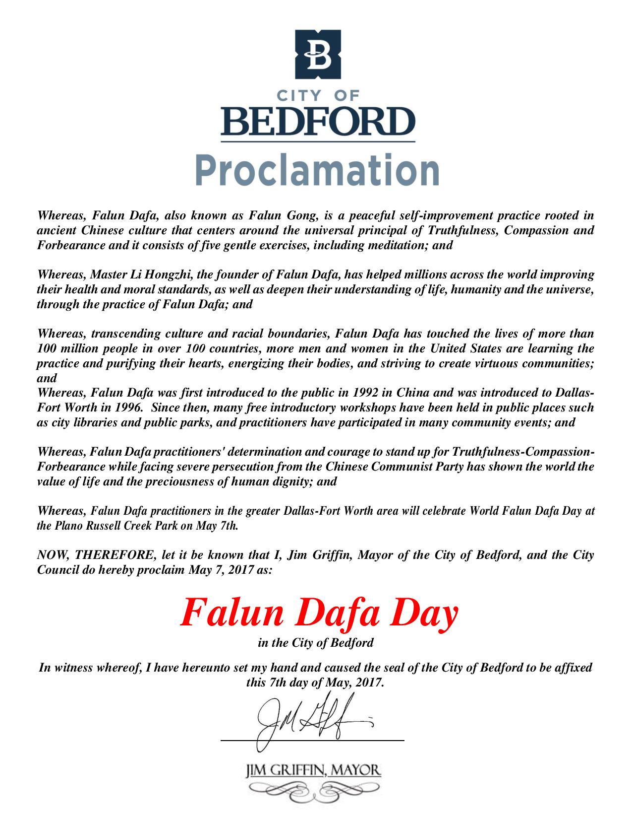 圖5:美國德州伯德福特市宣布「法輪大法日」 |